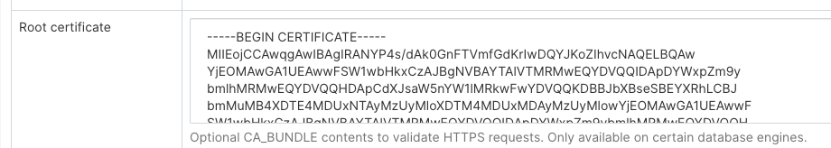 "sslrootcert": "/path/to/my/pem"
